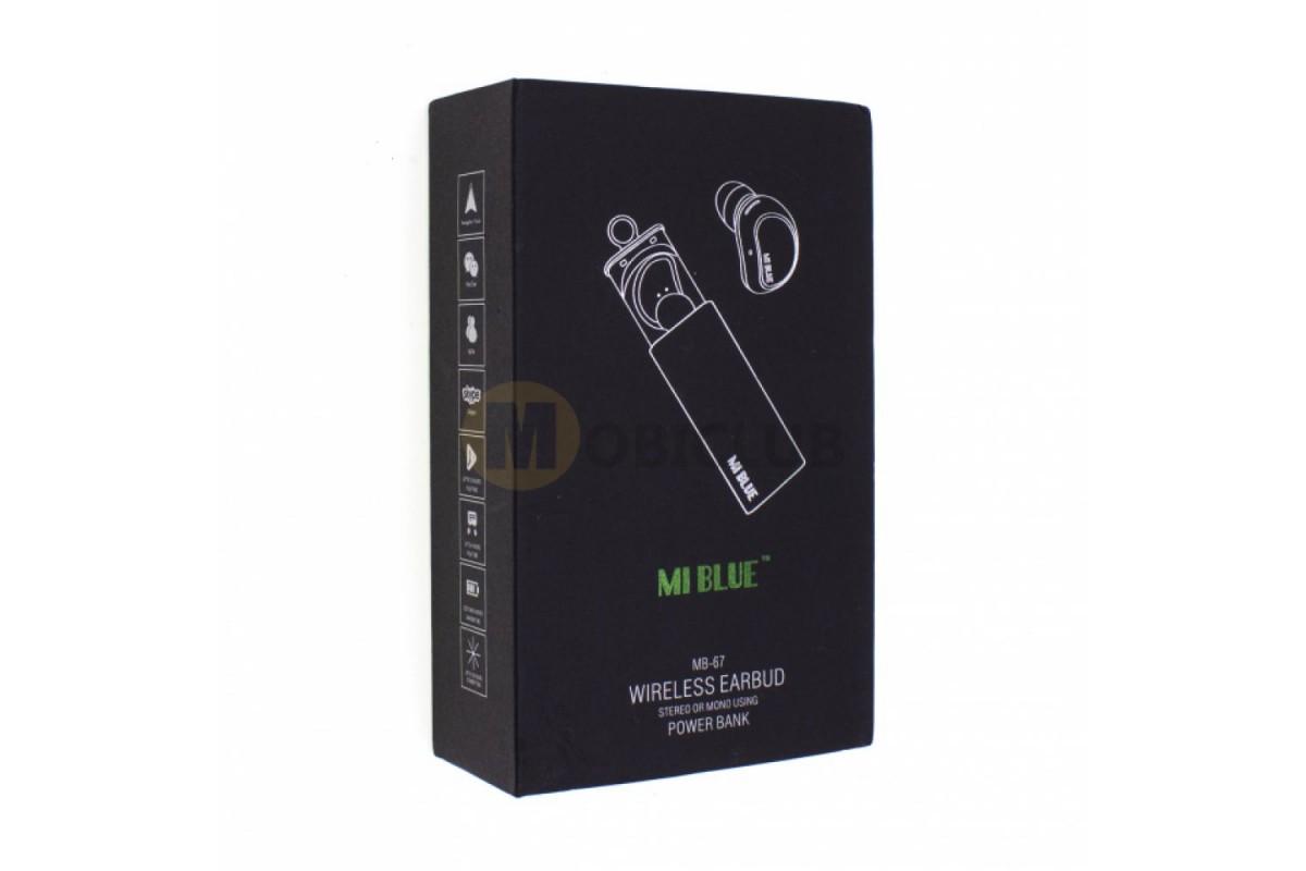 Блютуз гарнитура MI BLUE MB-67 - максимально эффективно поможет вам выполнять текущие дела и совершать вызовы в дороге. Батарея устройства обеспечивает время работы в режиме разговора до 6-8 часов. Корпус выполнен из надежного и прочного пластика с матовой поверхностью, со встроенным микрофоном. Достаточно удобно и комфортно располагается в ушной раковине. В комплект товара входит устройство для подзарядки, чехол на змейке и удобный ремешок. Оцените преимущество блютуз гарнитуры MI BLUE MB-67 оптом, форсируя получение потенциальной прибыли.