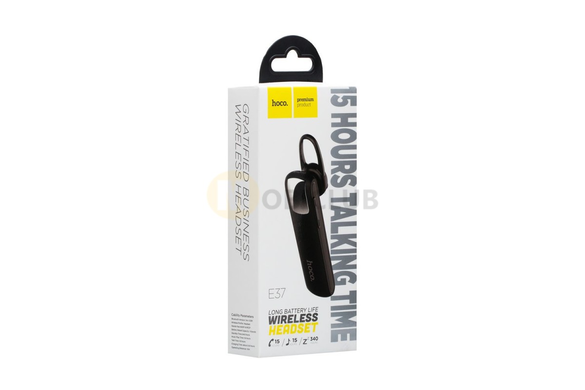Блютуз Гарнитура Hoco E37 - консервативного классического дизайна, прекрасный аксессуар для подарка. Модель интуитивно понятной конструкции легко сопрягается с вашим мобильным телефоном и удобна в использовании. Емкость аккумулятора в 170mah позволяет использовать гарнитуру в режиме разговора или воспроизведения музыки до 15 часов, время полного заряда батареи не превысит 2.5 часов. Корпус выполнен в стильной форме, изготовлен из надежного и прочного пластика. Гарнитура имеет компактные размеры и небольшой вес, удобно садится в ушной раковине и не выпадает. Bluetooth версии 4.1 обеспечивает стабильный сигнал и качественную передачу сбалансированный звук без каких-либо проводов. Аксессуар оснащен кнопкой приема вызова и микрофоном с потрясающей передачей речи. Комплектуется небольшой дужкой крепления к уху, сменной амбушюрой и micro-usb кабелем для зарядки. Hoco - это динамически развивающийся лидер на рынке акустических систем.