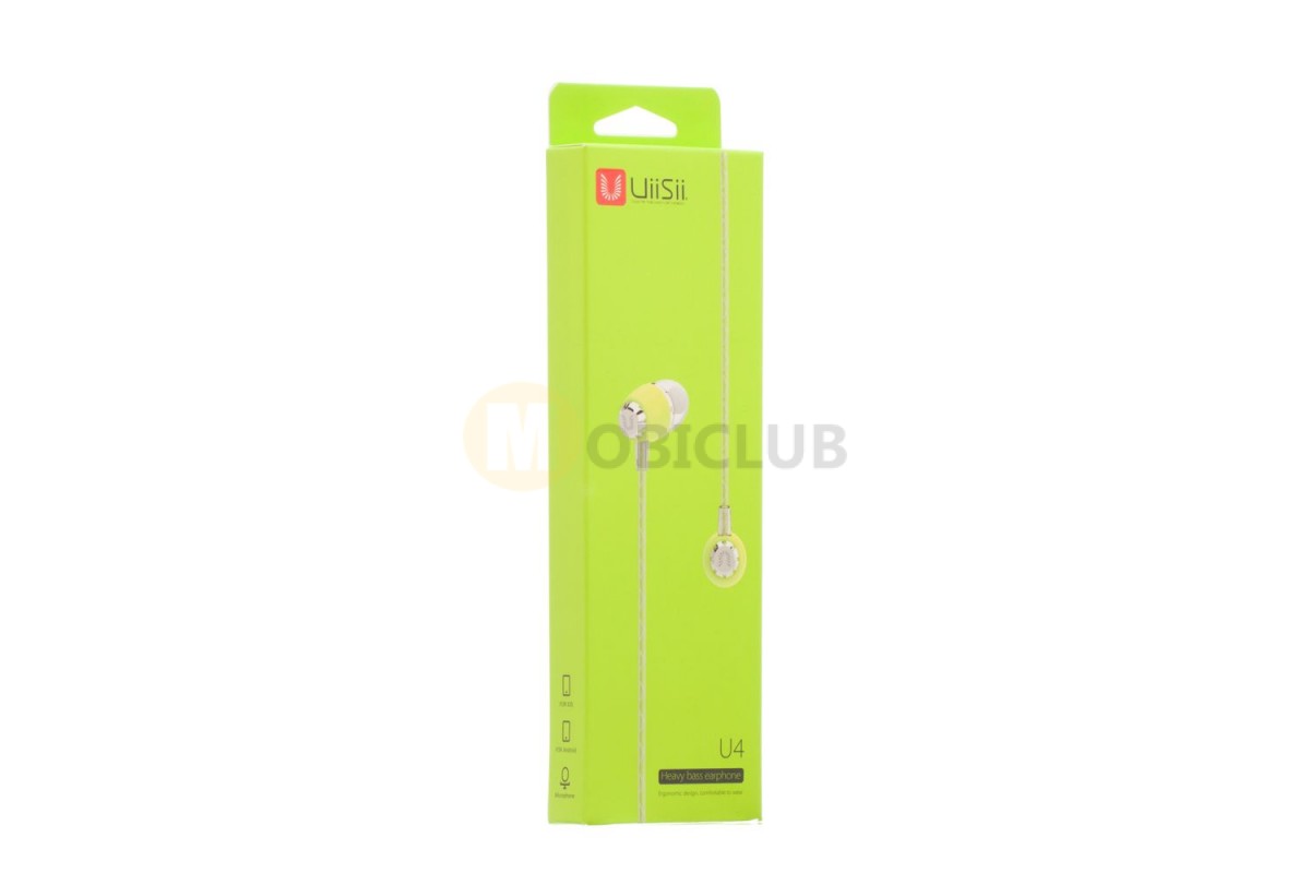 Вакуумные наушники UiiSii U4 - стерео наушники в оригинальном дизайне. Модель наушников представлена с микрофоном, кнопками регулирования громкости и принятия вызова, имеет прочный пластиковый корпус с глянцевой поверхностью в нескольких очень ярких расцветках. Оплетка кабеля изготовлена из крепких и надежных материалов. Наушники удобно садятся в ушной раковине и не выпадают. В комплект входят силиконовые амбушюры разного размера, что делает наушники удобными для любого пользователя. Модель имеет стандартный разъем mini-jack 3,5 мм. Оцените преимущества бренда наушников UiiSii в оптовых продажах.