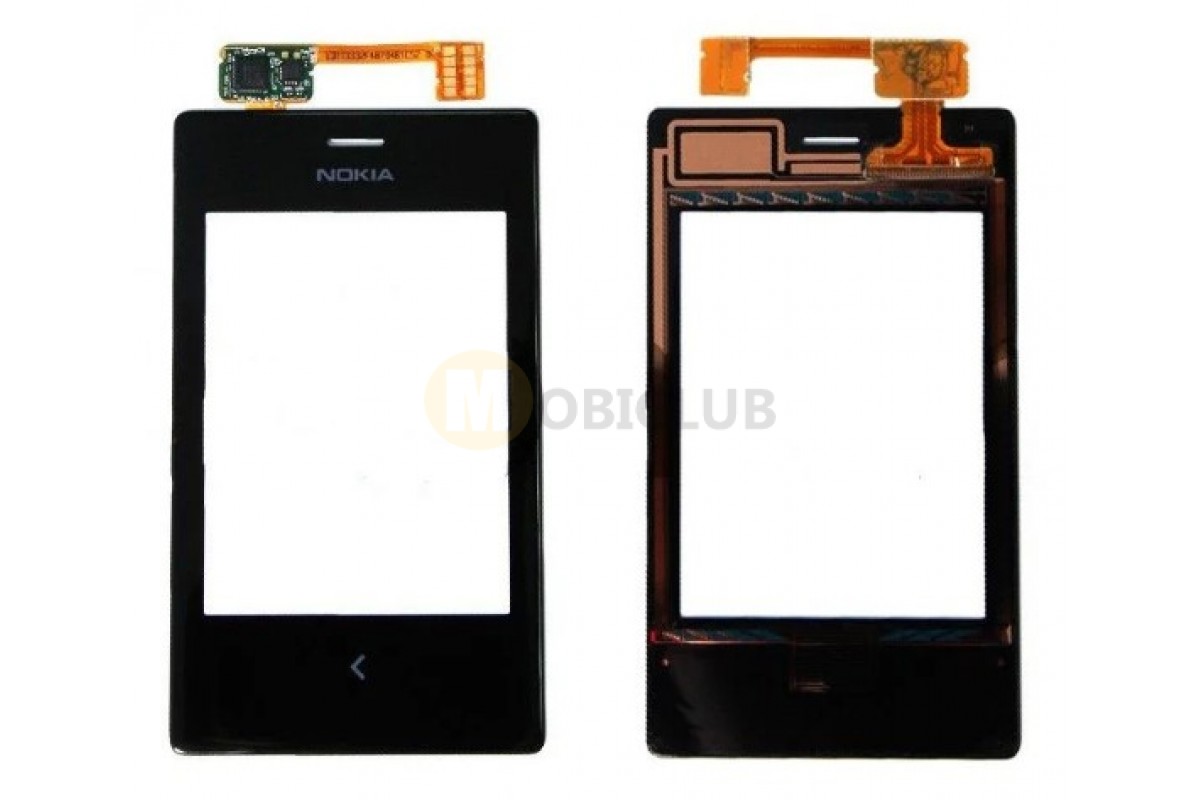 Тачскрін (сенсор) для Nokia 502 Asha Dual Sim, чорний, з кріпленнями під гвинти, оригінал (Китай) big ic (5mm) / small ic (4mm)